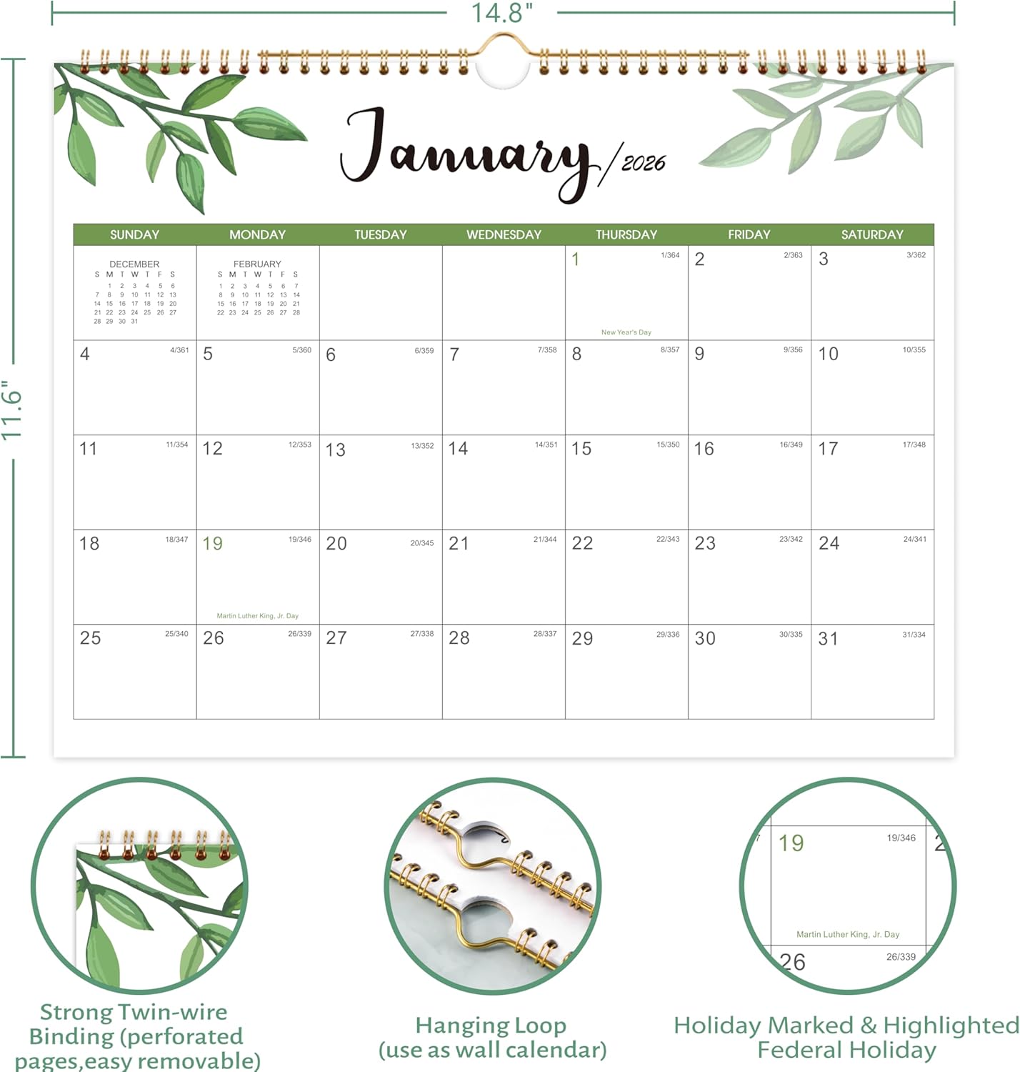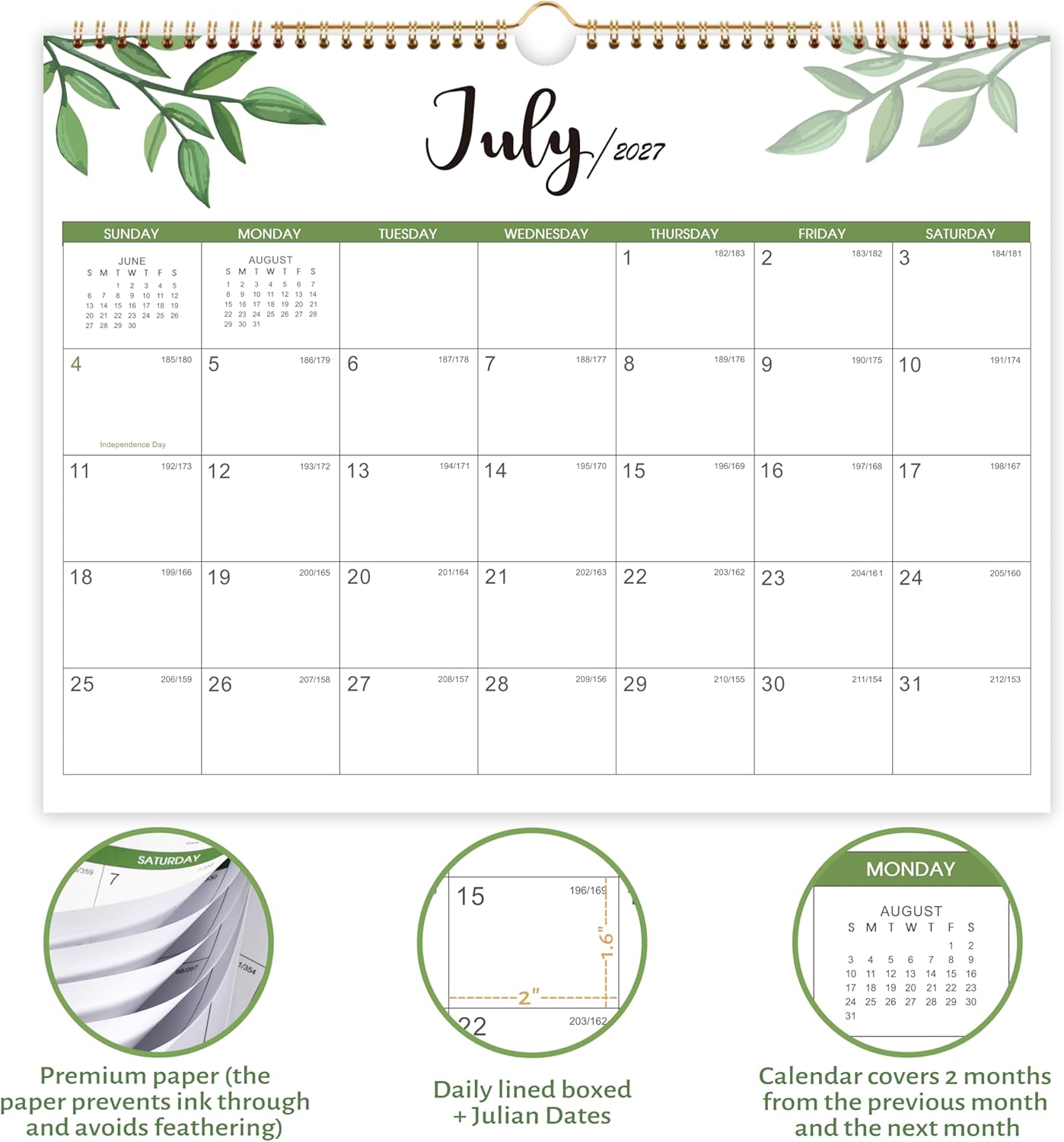 2026-2027 Calendar, 2 Years Wall Calendar 2026-2027, 14.8” x 11.5”, JAN. 2026 – DEC. 2027, Large Blocks, 2026 Wall Calendars with Julian Dates