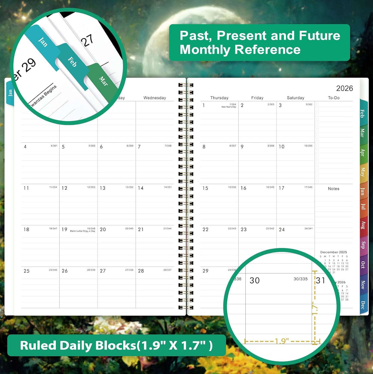 2026 Planner – 2026 Planner Weekly and Monthly, 9″ x 11″, Jan.2026 – Dec.2026, Planner 2026 Weekly and Monthly with Colorful Tabs, Strong Twin-wire, Back Pocket – Dreaming Moon