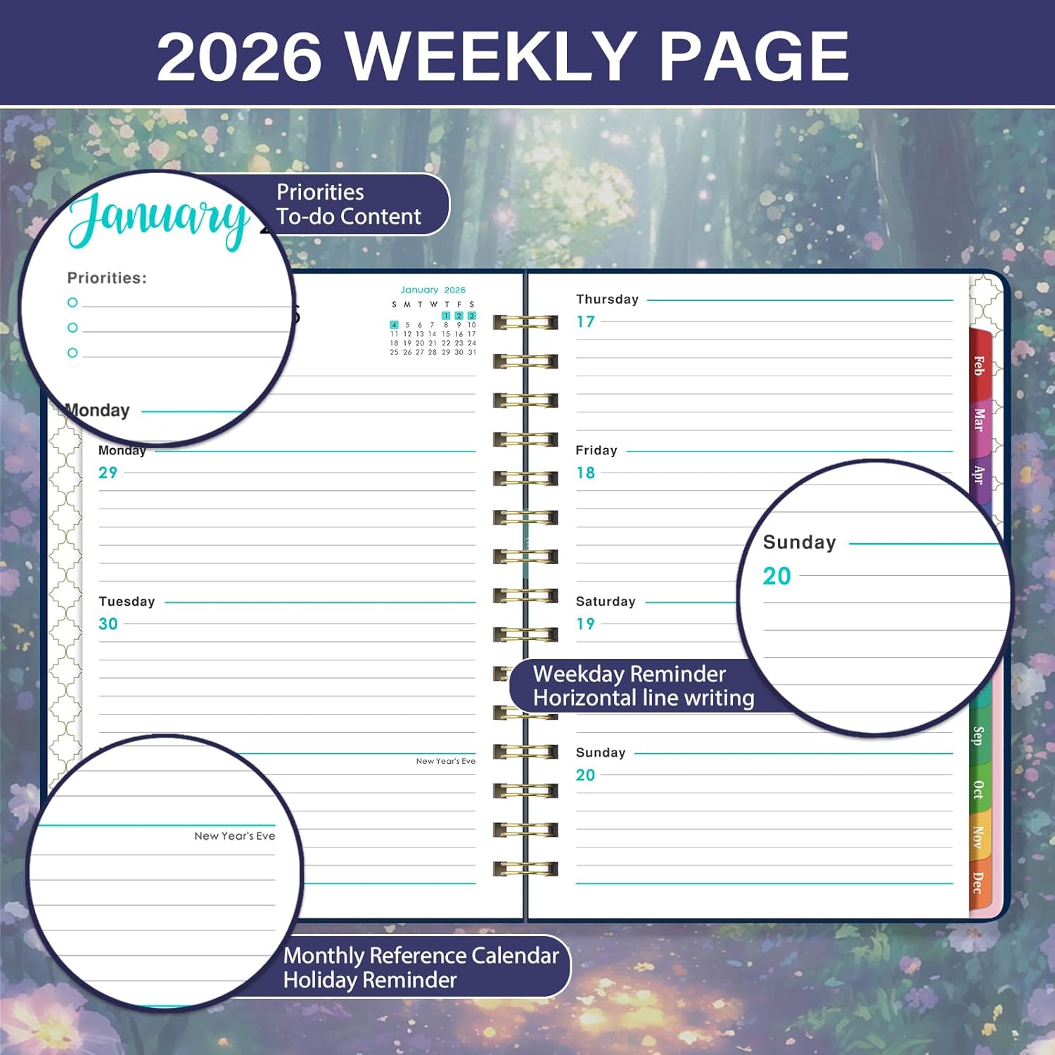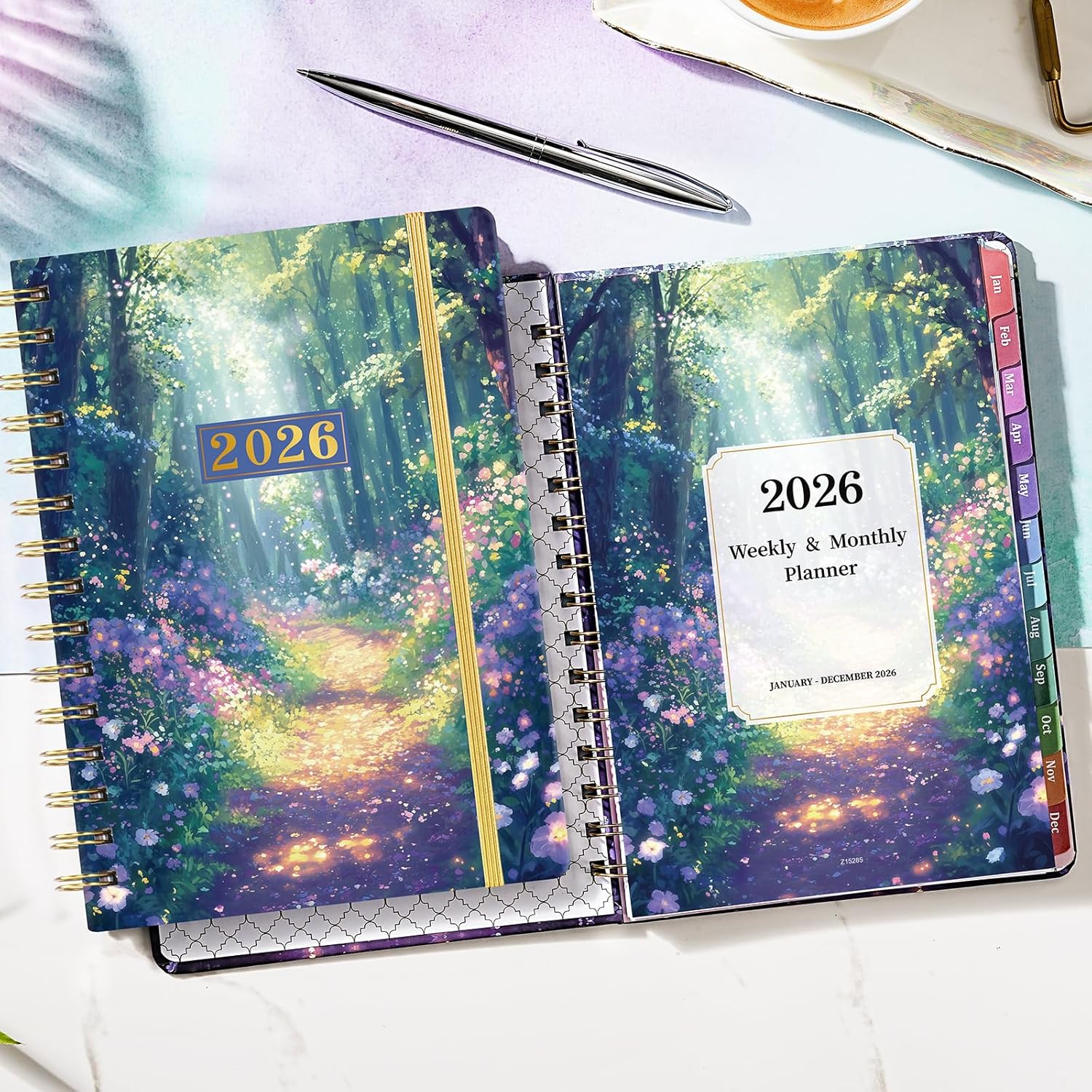 2026 Planner – Planner 2026 Weekly and Monthly from Jan.2026 – Dec.2026, 8.5” X 6.4”, Weekly Monthly Planners 12 Month with Colorful Tabs, Back Pocket – Forest Path