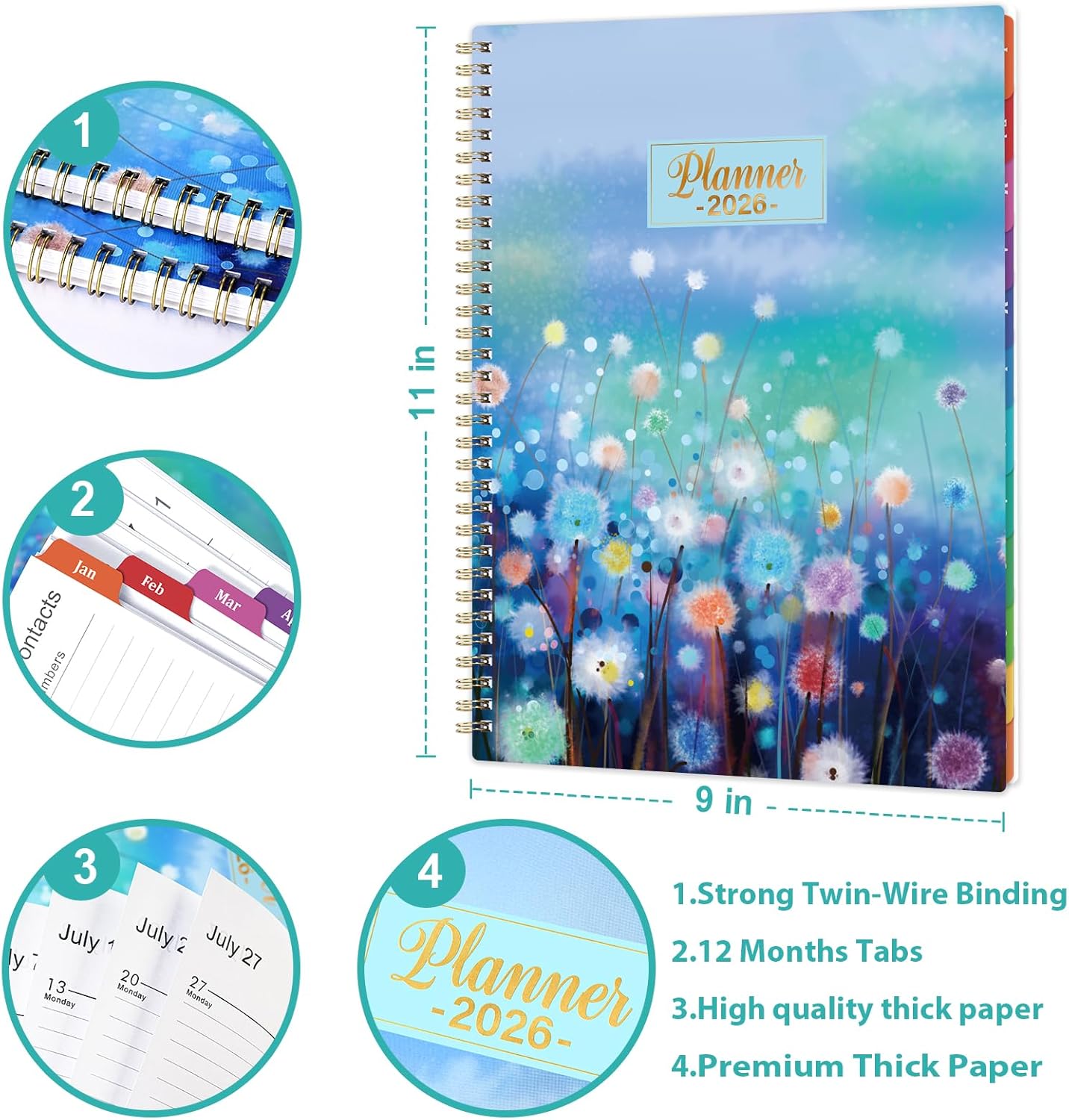 - Size of the 2026 planner: 8.5 x 11 x 0.5 inches