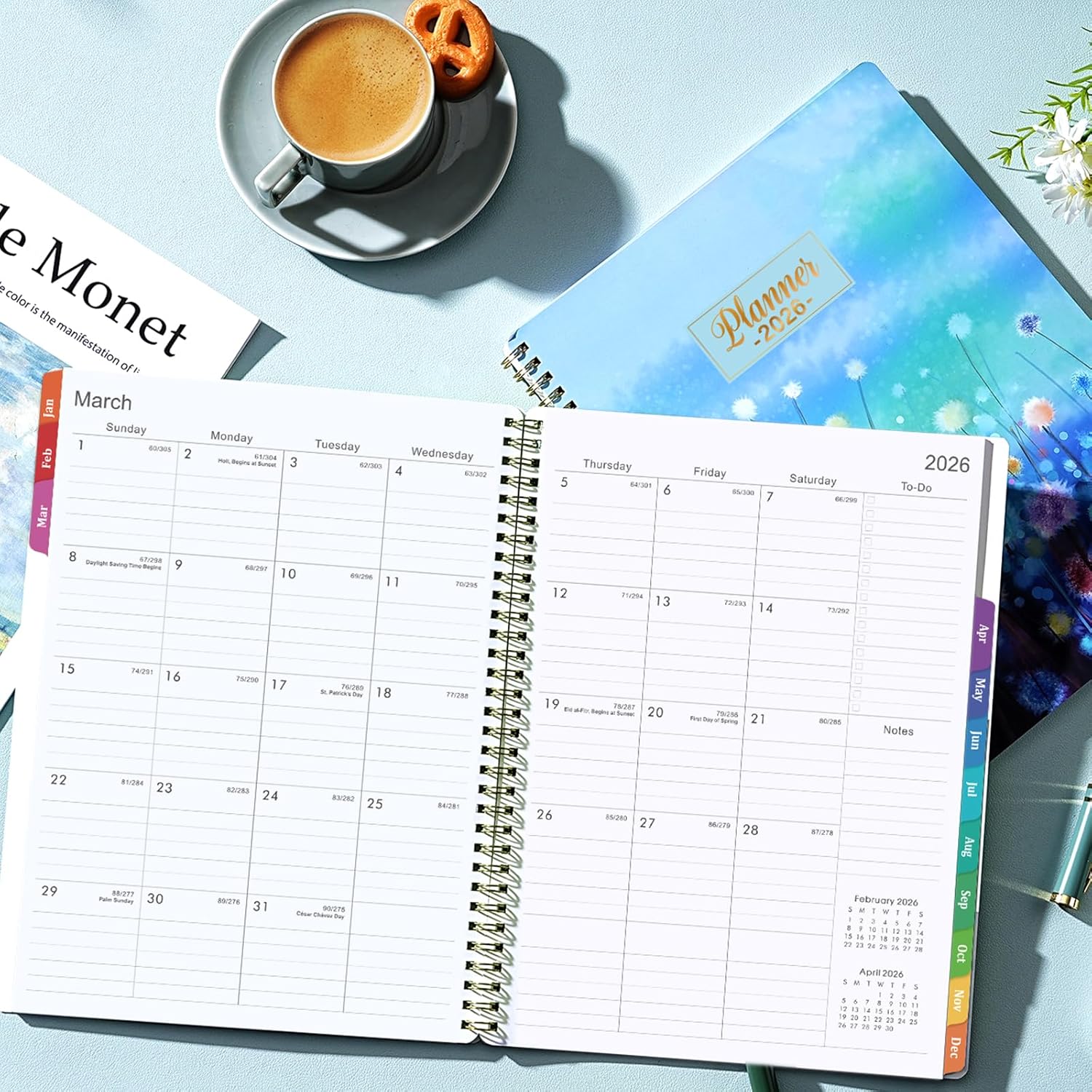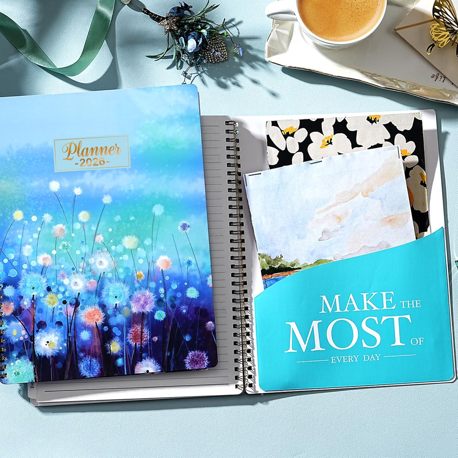 - Color of the planner 2026: Blue floral