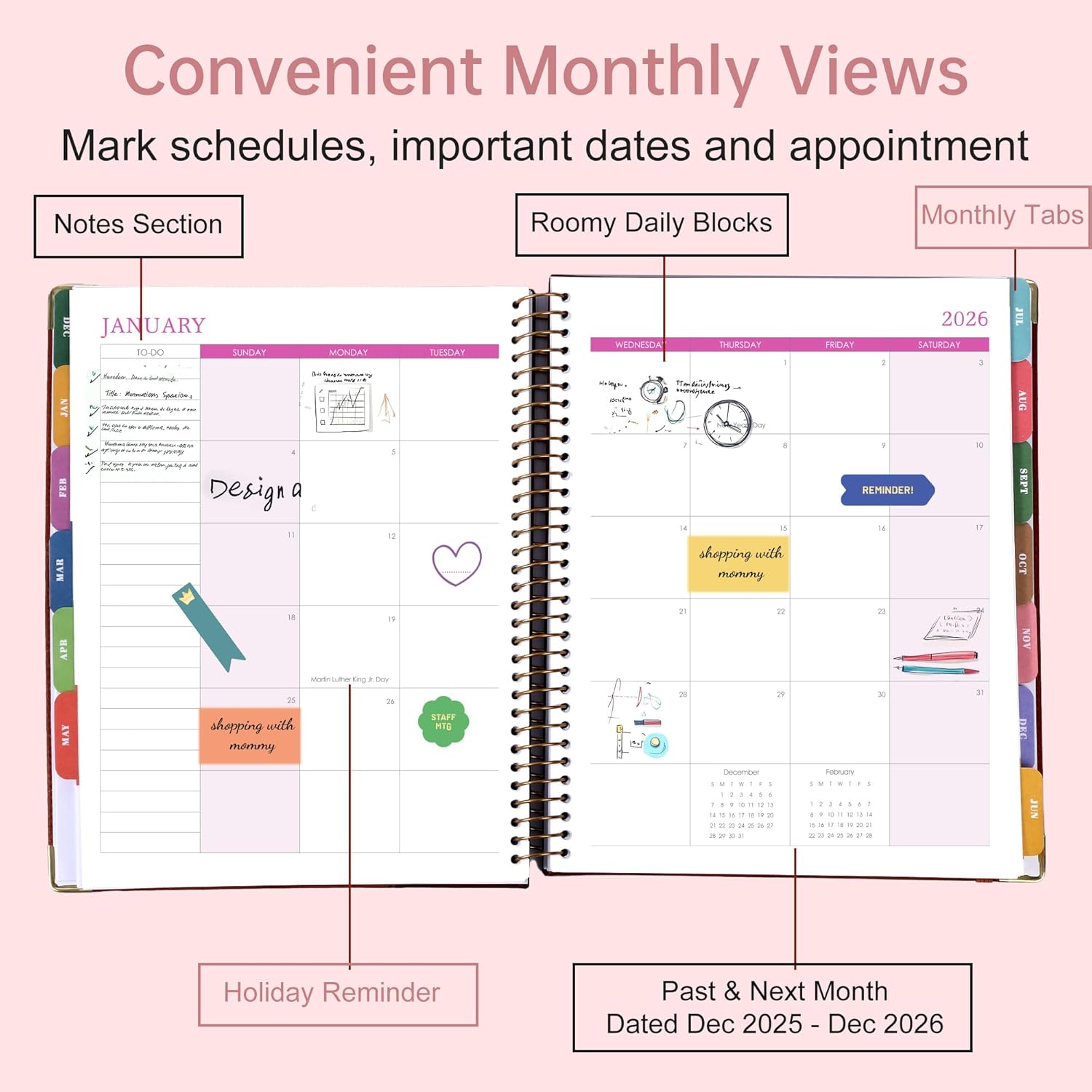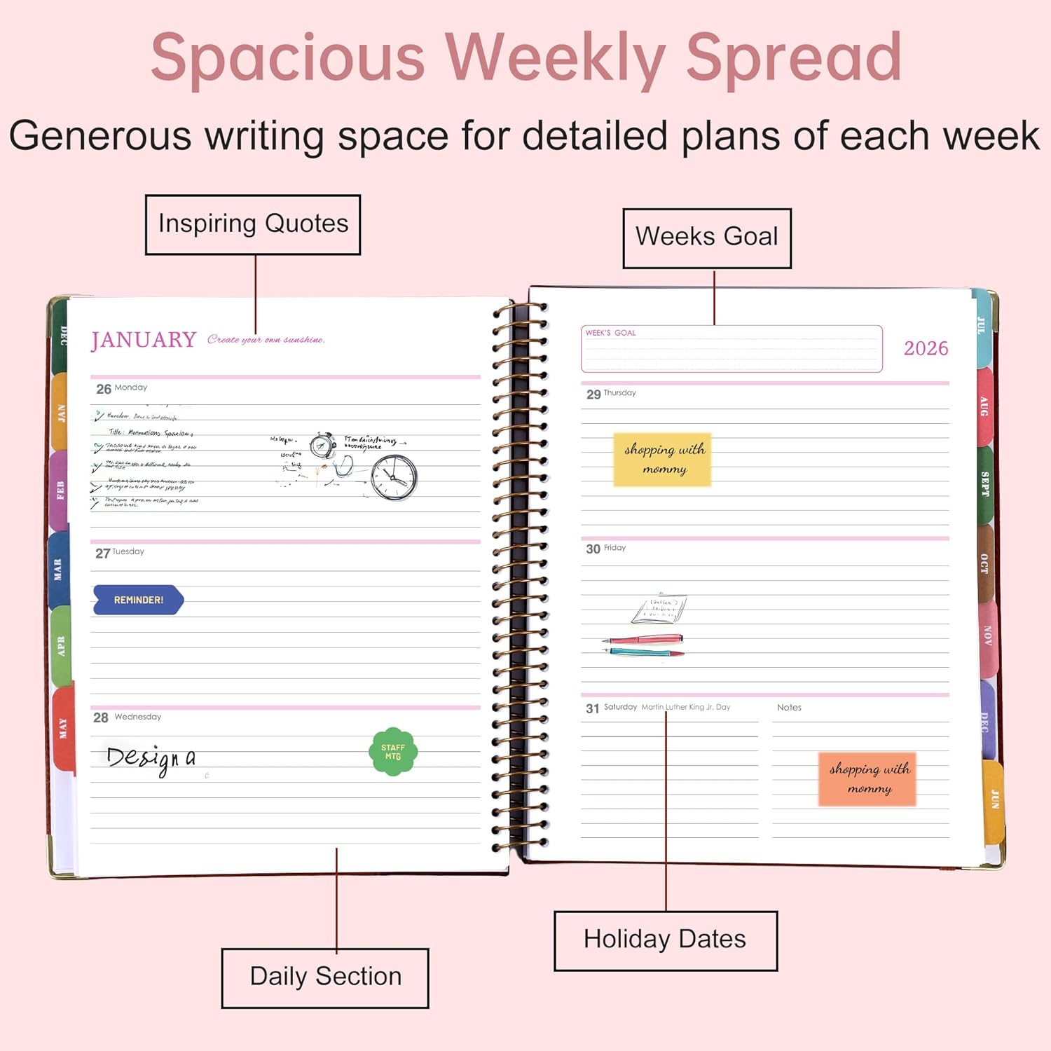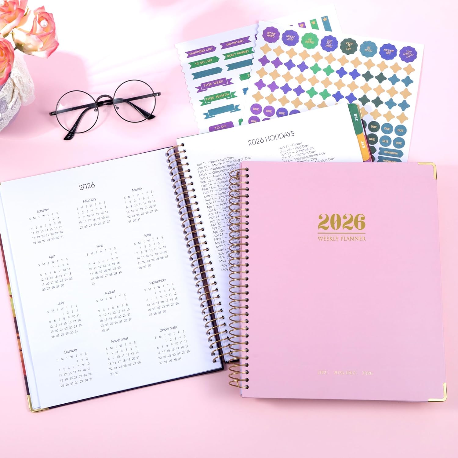 Yoment 2026 Planner Weekly and Monthly 8.5″x11″ Large Hardcover Planner from Dec 2025 – Dec 2026 13 Months Calendar Academic Planners for Women Men Agenda Daily Weekly Yearly Planning with Tabs, Pink